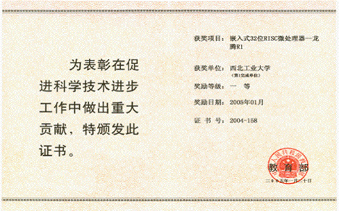 自主创新设计的32位高性能RISC微处理器—“龙腾R1”获教育部科技进步一等奖