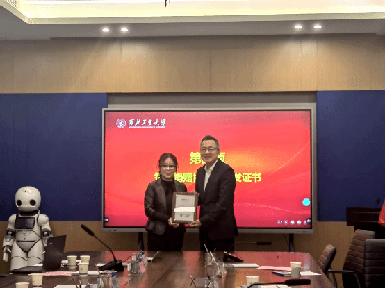 教育基金会向张林颁发了捐赠证书。随后,万海东与张林签署了就业与实习基地协议,由张林、万海东、王兆旭共同为“国产偷拍