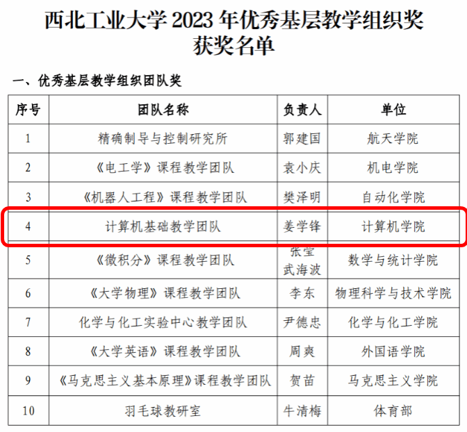 优秀基层教学组织团队奖”!