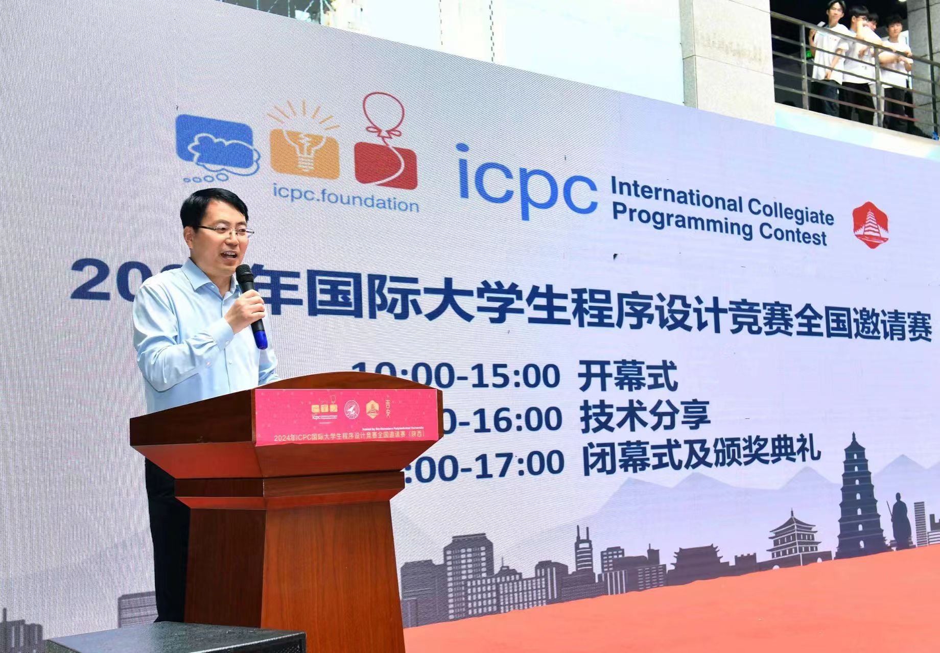 党委书记李春科、国际大学生程序设计竞赛亚洲EC委员会主任、北京大学人工智能研究院副院长李文新、ICPC亚洲委员会共同主任姜学锋、华为技术有限公司和苏州同元软控信息技术有限公司的企业代表等嘉宾出席了开幕式。开幕式上,张学良介绍了西工大学生学科竞赛活动的实施情况,表示将努力为参赛选手和教练提供优质的服务。李文新盛赞国产偷拍