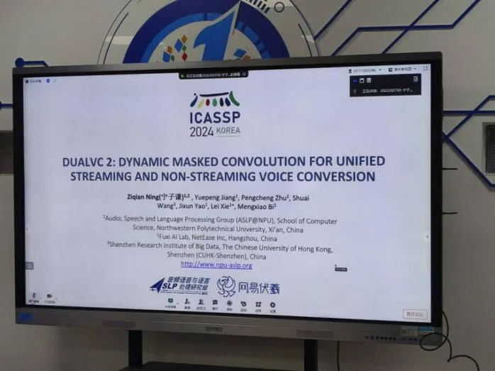 宁子谦同学分享了参加ICASSP2024的经历,并简要介绍了他的会议论文《Dynamic Masked Convolution For Unified Streaming And Non-Streaming Voice Conversion》。他通过动态掩码卷积实现了统一的流式和非流式语音转换系统,兼顾实时性和高精度,适应不同应用场景的需求。