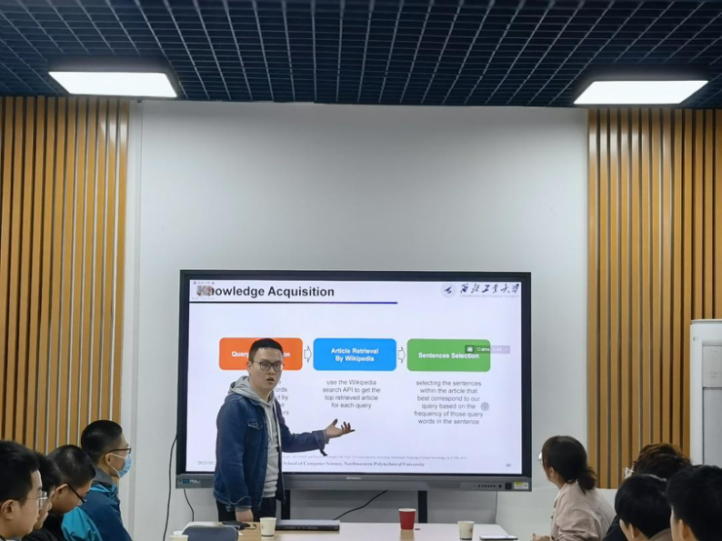 本次报告会主题为“Vision-language interaction: technologies behind applications”。随着计算机科学和互联网技术的日益发展,大数据、高性能计算和自然语言处理技术的不断成熟,视觉语言交互应运而生。牛凯老师提到本次报告会他想让同学们了解日常生活中随处可见的视觉-语言交互任务,了解这些应用背后的最新技术,并向同学们展望人工智能技术的未来发展。视觉语言交互在人机交互、智能驾驶以及智能家居等领域的应用越来越广泛,这需要用到包括跨模态检索、图片捕捉、视觉问答等方面的关键技术,并向同学们解释了什么是“跨膜态检索”,“跨模态检索”是在一种模态的数据中检索另一种模态的数据,具体方法是将不同模态的特征投影到一个共同潜在子空间,然后在该子空间中度量不同模态的相似性,从而实现跨模态检索,它可以将一幅图片中的不同物体分辨并识别出来。基于跨模态检索技术,图片捕捉技术可以实现将一幅图片用一句话来描述,从而实现类似“看图说话”的功能。