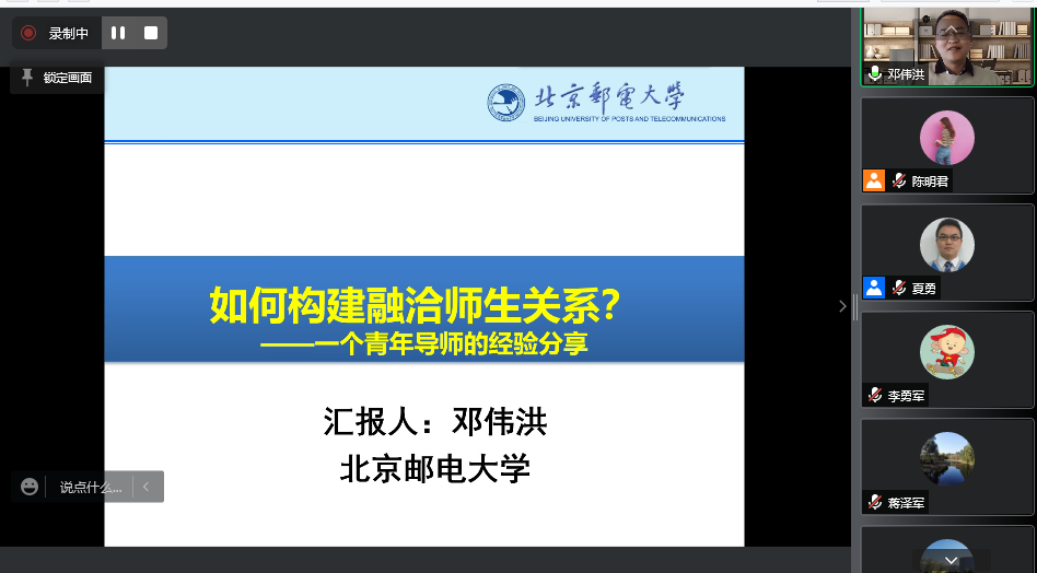邀请北京邮电大学“鸿雁人才”特聘教授、国家青年人才项目获得者邓伟洪教授以线上进行的方式,开展了以“如何构建融洽的师生关系--一个青年导师的经验分享”为题的导师培训会。培训会由国产偷拍
