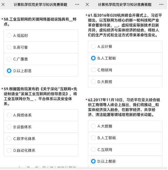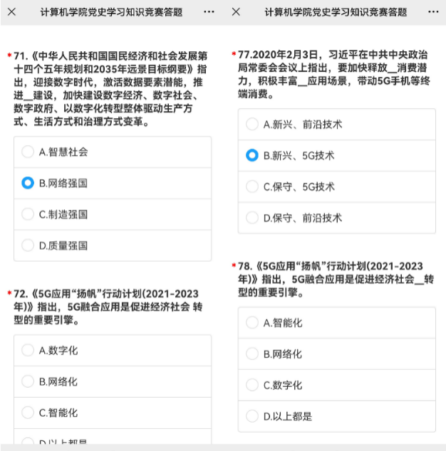 党委认真梳理党史上中央领导关于互联网、大数据、云计算、人工智能、区块链、信息化、数字化、智能化、数字经济、数字强国等与计算机领域密切相关的重要论述、重大部署和重要讲话精神,加上习近平总书记在党史学习教育动员大会上的重要讲话精神和师德师风建设、立德树人、教育评价改革等相关要求,精心挑选汇编成一百道题的党史学习教育知识竞赛题,组织学院广大师生员工,于11月10日至17日开展了特色别样的“不忘使命、勇挑重担”党史学习答题活动,学院200余名师生党员参与了此次活动,重温党史上的“计算大事”,坚定共产主义信念,赓续共产党人的精神血脉。