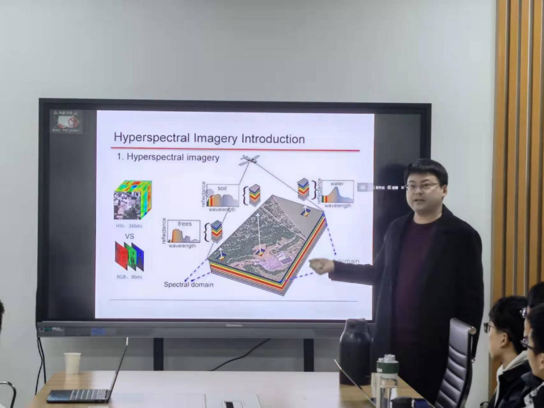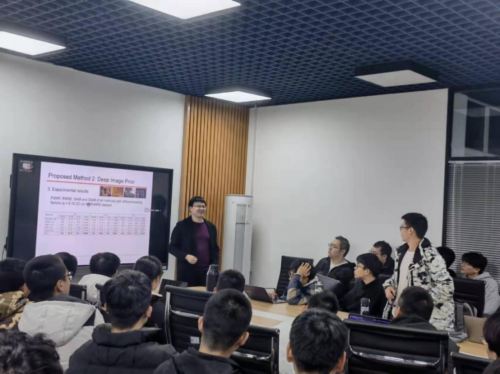 魏巍老师为同学们带来主题为“Hyperspectral Imagery Processing and Classification”的报告,从高光谱图像介绍、高光谱图像处理、高光谱图像分类三个方面详细且深入地介绍了高光谱图像的相关内容,魏老师提到:“高光谱图像是指光谱分辨率在10e-2λ数量级范围内的光谱图像,它的信息量比普通数字图像要多很多,因此可用于多种普通数字图像无法涉及的领域,比如水污染治理、案件现场勘查、物体材质识别等领域,并且为了更好地处理高光谱图像,主要需要克服图像压缩、噪点、低分辨率这三个方面的问题。”针对这些问题,魏巍老师团队采用数字图像和高光谱图像互补处理的方式,并运用机器学习、优化等技术,建立了自己的模型,并且很好地解决了这些问题。