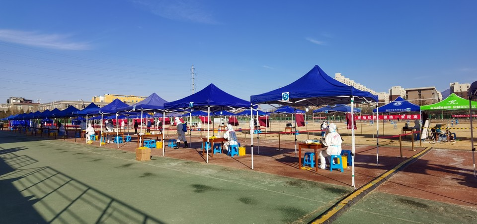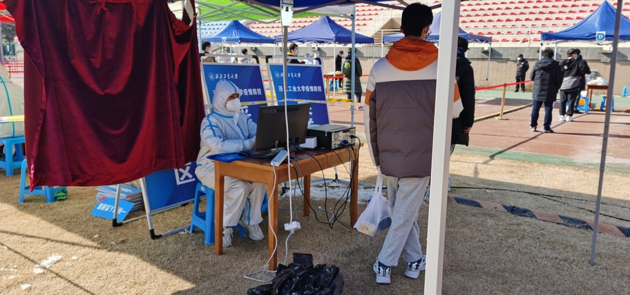 “岂曰无衣,与子同袍;凝心聚力,共克时艰”。在医护人员和志愿者们的认真工作下,全校四万余名师生核酸检测有条不紊地进行着。18级的同学们变身穿上防护服“大白”,他们自告奋勇,顶着冬日凛冽的寒风,冲锋在抗击疫情的前线,核实每一位同学的信息,维持现场秩序,疏导人员有序离场,转运医疗物资……