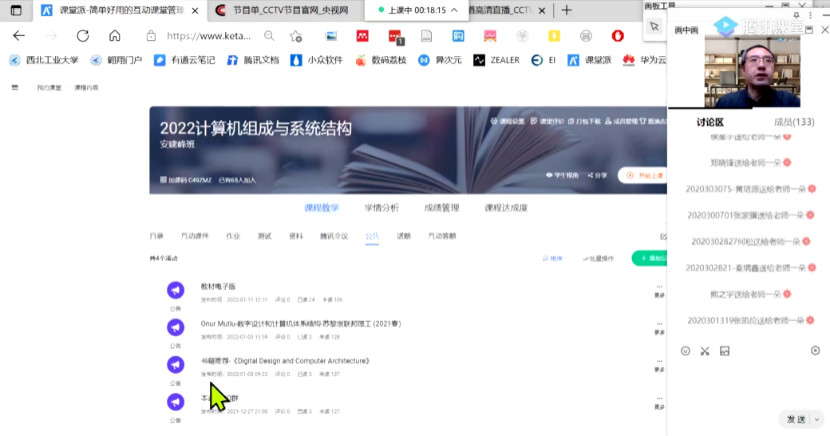 1月11日,安建峰老师给学生上《计算机组成与系统结构》课