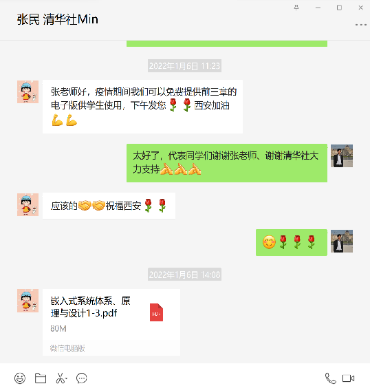 开设的《嵌入式系统》是一门知识高度综合、工科特色突出的计算机专业课程。课程负责人和主讲老师张凯龙针对线上教学特点,第一时间升级教学内容,并及时与清华大学出版社沟通将其编著出版的教材前3章免费提供给学生,延长其在中国大学MOOC的课程学期,并在学校课程资源平台开放电子课件、工具软件及案例视频等,为课程教学活动的顺利开展提供全方位资源保障。