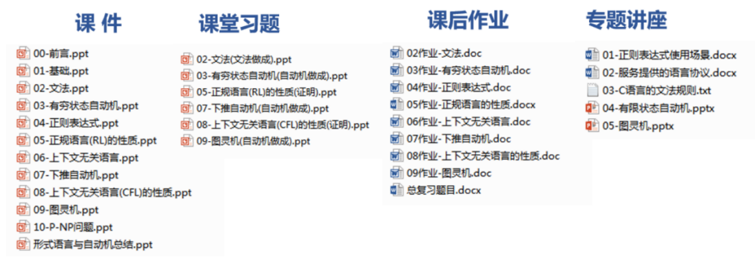 张小芳老师为了适应线上教学模式,将《形式语言与自动机》课程分类整理形成课件、课堂习题、课后作业、专题讲座4类教学素材,使学生充分了解和重视线上教学形式。