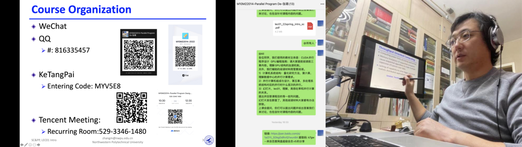 共推出线上研究生课程12门,覆盖学生300余人。采用腾讯会议等教学形式,师生”在云端”进行交流。