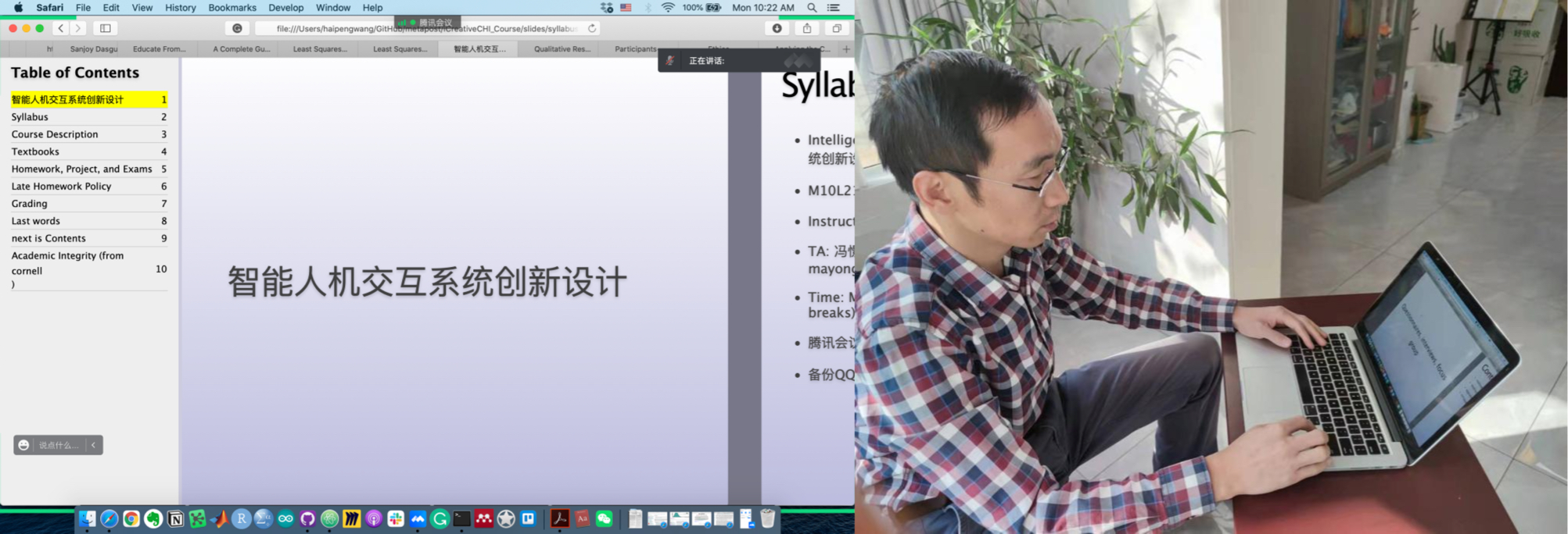 高翔老师承担全英文的留学生课程《algorithm design and analysis》,在家中布置了直播场景,高保真麦克风,柔光灯齐上阵,更是把书房改造成了直播间。收集英文资料、设计作业、解决口语障碍、克服时差,常常忙碌到半夜。