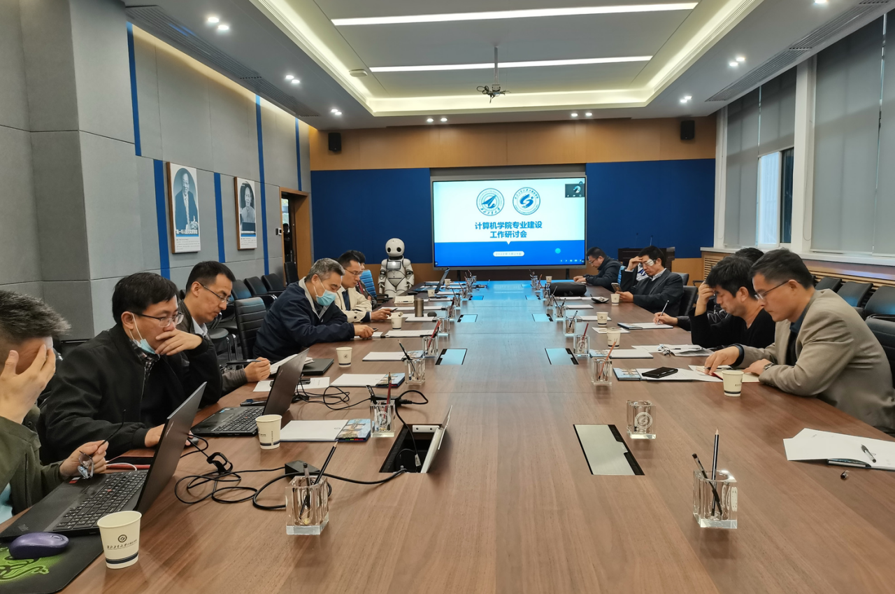 数据科学与大数据技术、物联网工程、人工智能三个专业的负责人李战怀、郭斌、王鹏依次对专业现状与问题分析、建设思路与具体举措、预期规划与建设成效进行了汇报。