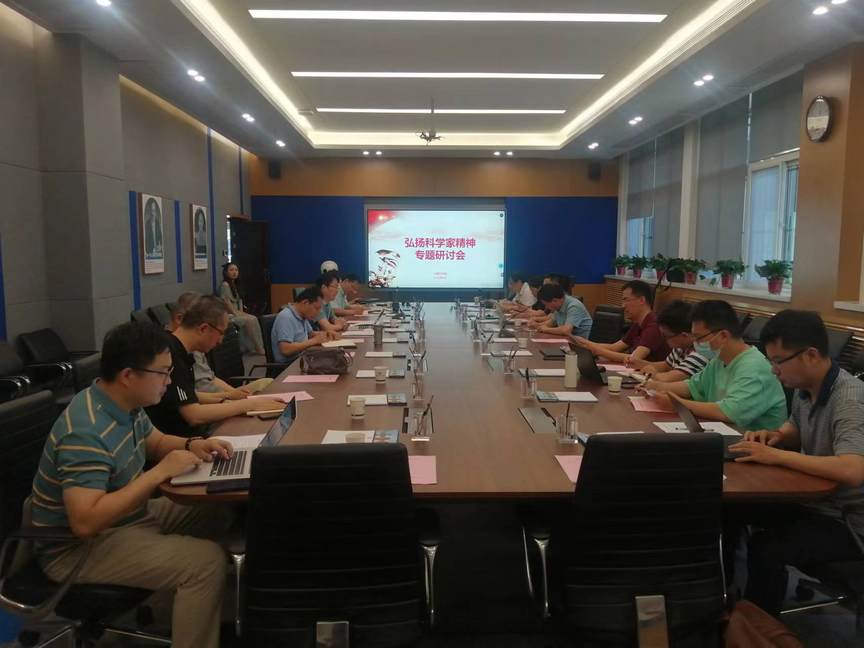 李春科带领大家学习了习近平总书记关于“科学家精神”的重要论述,观看相关视频。与会人员围绕科学家精神六方面主要内涵,结合学院实际情况,深入交流研讨如何真正弘扬科学家精神、传承康继昌老一辈计算机人爱国育人的传统,心怀“国之大者”,瞄准国家需求,奋力写好新时代一流人才培养的“奋进之笔”。