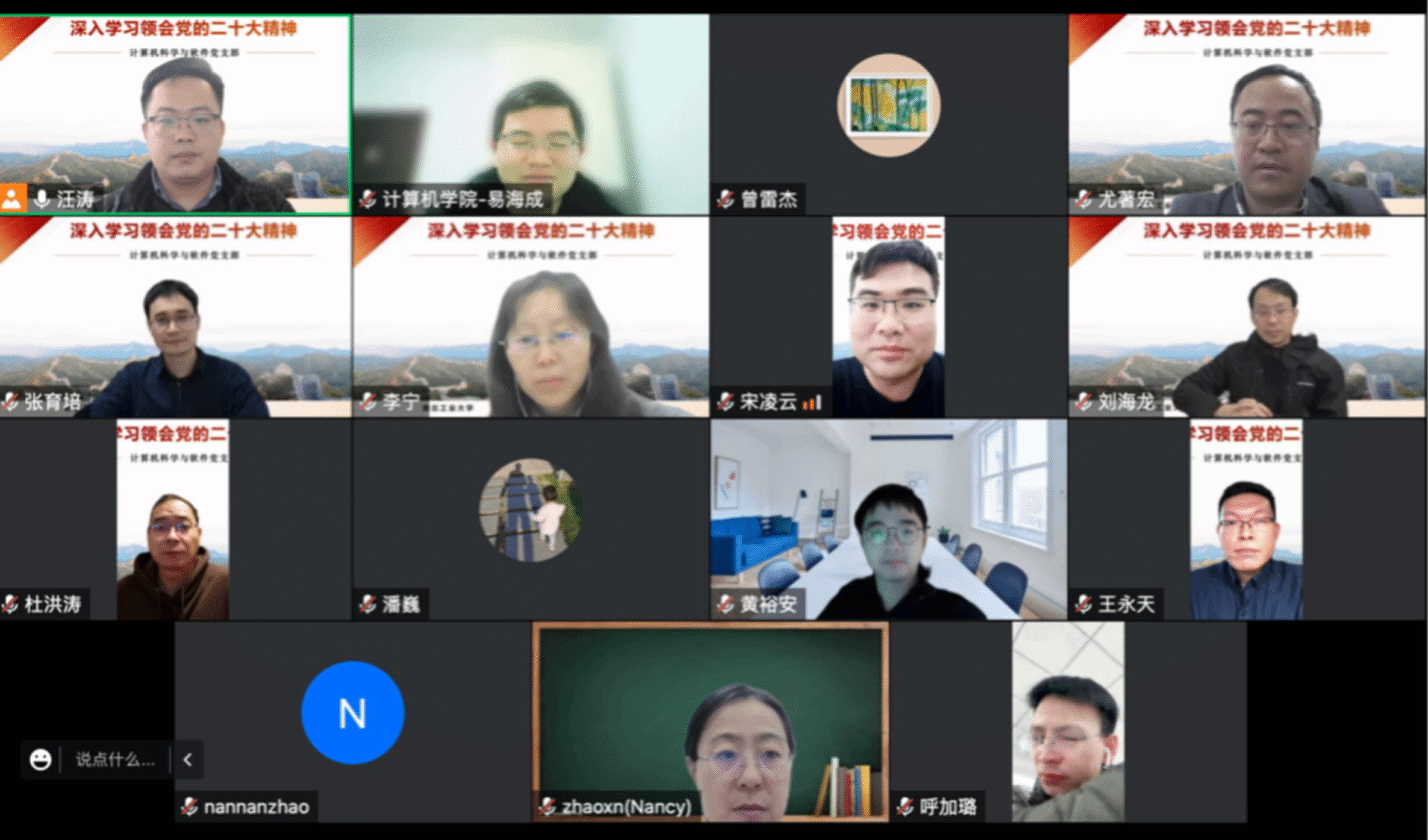 计算机科学与软件党支部举办了以“深入学习领会党的二十大精神”为主题的党日活动,集中学习和研讨了党的二十大精神。会议由党支部书记汪涛主持,党支部全体成员及计算机科学与软件系青年教师参加了此次活动。