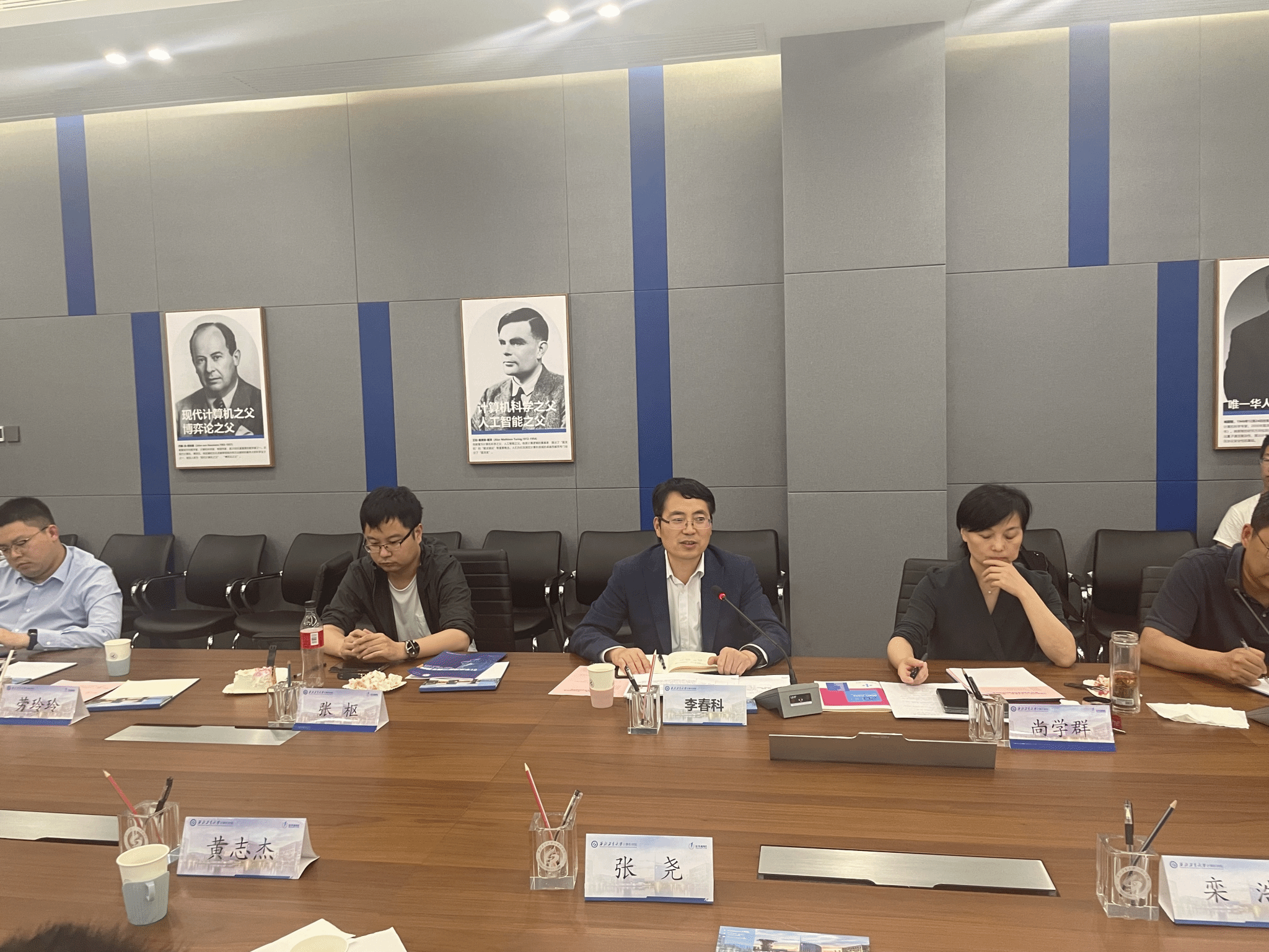 庆典仪式后,西安交通大学栾浩教授作了题为“数字孪生与元宇宙:研究与挑战”的报告,现场学术氛围专注而热烈。报告主要从数字孪生网络构建、信息分享、孪生智能等角度分享相关研究成果,并对数字孪生与元宇宙的应用场景,主要技术进行讨论。数字孪生面向未来智能系统,提供了一种“虚-实结合”的新型通信方法,但是针对这种方法,还面临着诸多机遇和挑战,这需要进一步的探索和挖掘。现场教师针对此研究方向展开了深入的交流,碰撞出了更多智慧的火花。