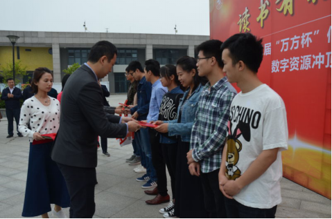 党委副书记董昊、自动化学院党委副书记邱若娟、图书馆副馆长李辉、图书馆副馆长副书记何惠如一同出席。图书馆馆长李铁虎教授发表了热情洋溢的致辞,他对世界读书日活动的重大意义以及我校图书馆所开展的工作做了说明,对所有获奖学生表示了祝贺。他希望同学们在信息技术高速发展的时代背景下,努力提升信息素养,培养综合能力,快速适应知识经济时代对人才的需求,充分利用图书馆丰富的知识和信息资源,完善知识结构,全面成长成才。随后图书馆领导及嘉宾向获奖同学颁发了荣誉证书和精美奖品。