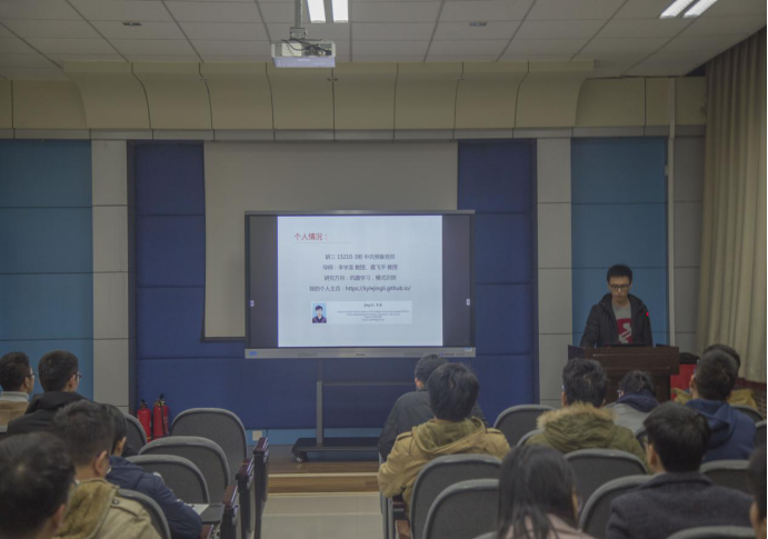 首先由2016级的蒋旻悦同学为大家介绍自己的获奖经验,他在2016-2017学年发表1篇SCI 3区的文章,并且学业成绩名列前茅。他用自己科研路上的认真和坚持鼓励学弟学妹们踏实前进,不负大好时光。接下来由朱伟同学为大家讲述了自己参加国际会议的经历,鼓励同学们每天总结,积极交流,学好英语。还分享了阅读科研论文的方法及论文的写作方法,希望同学们在学习过程中以好的学习方法达到事半功倍的效果。最后研三的李晶同学用幽默诙谐的语言为大家讲述了自己科研生活。从“国奖距我有多远”的规划到“如何做好科研”的实践,他为我们总结了在论文写作和成果展示方面自己的经验,鼓励同学们在论文发表之后积极回复读者来信,这样更多的反馈可以碰撞出新的火花。