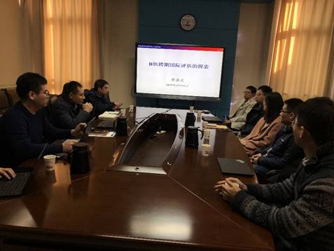 最后,於志文介绍了国际化评价标准的初级指标、高级指标以及终极指标,国际评估流程以及最终希望达到的“四个一”目标。本次将开展2016-2018年聘期已满的4位准聘教师的评估工作。