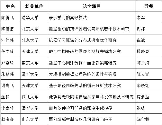 附1:2019年“CCF优秀博士学位论文奖”名单