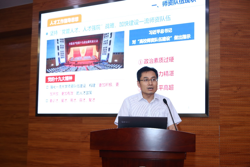 於志文做了题为“凝心聚力,真抓实干,扎实推进高水平师资队伍建设”的人才与师资队伍工作报告,分析了学院师资队伍现状,存在的问题,确立了“十四五”规划预期目标,制定了师资队伍建设举措。高武介绍了师资队伍建设相关文件制定情况。