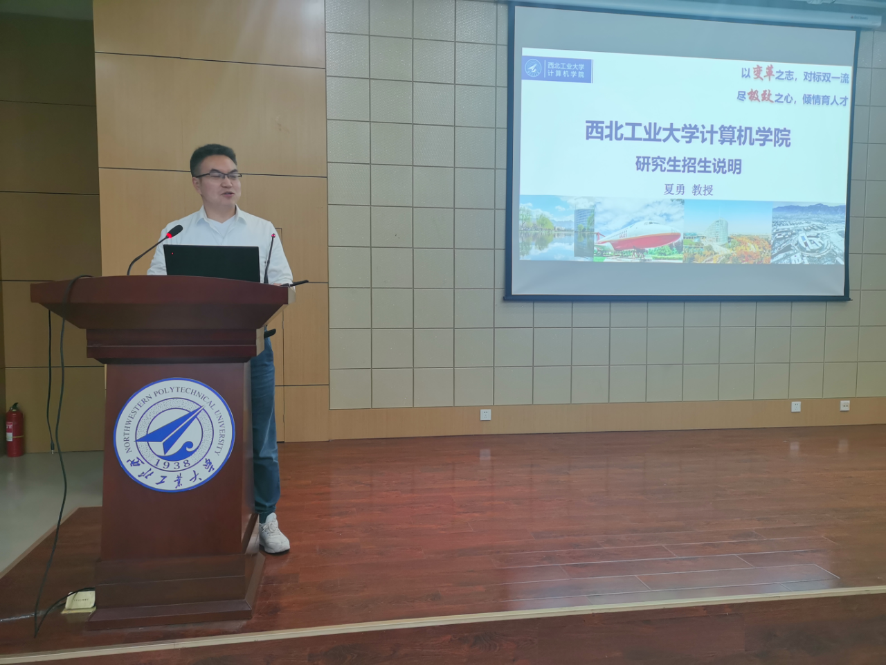 研究生招生宣讲会”,学院副院长尚学群教授、副院长夏勇教授、一系主任张羽副教授、副主任安建峰副教授、二系主任张晓副教授、三系导师代表王鹏教授、四系导师代表钟冬副教授、研究生秘书马捷中副教授、辅导员梁国强副教授和刘思聪副教授,以及2018级全体本科生参加了此次宣讲会。宣讲会由夏勇教授主持。