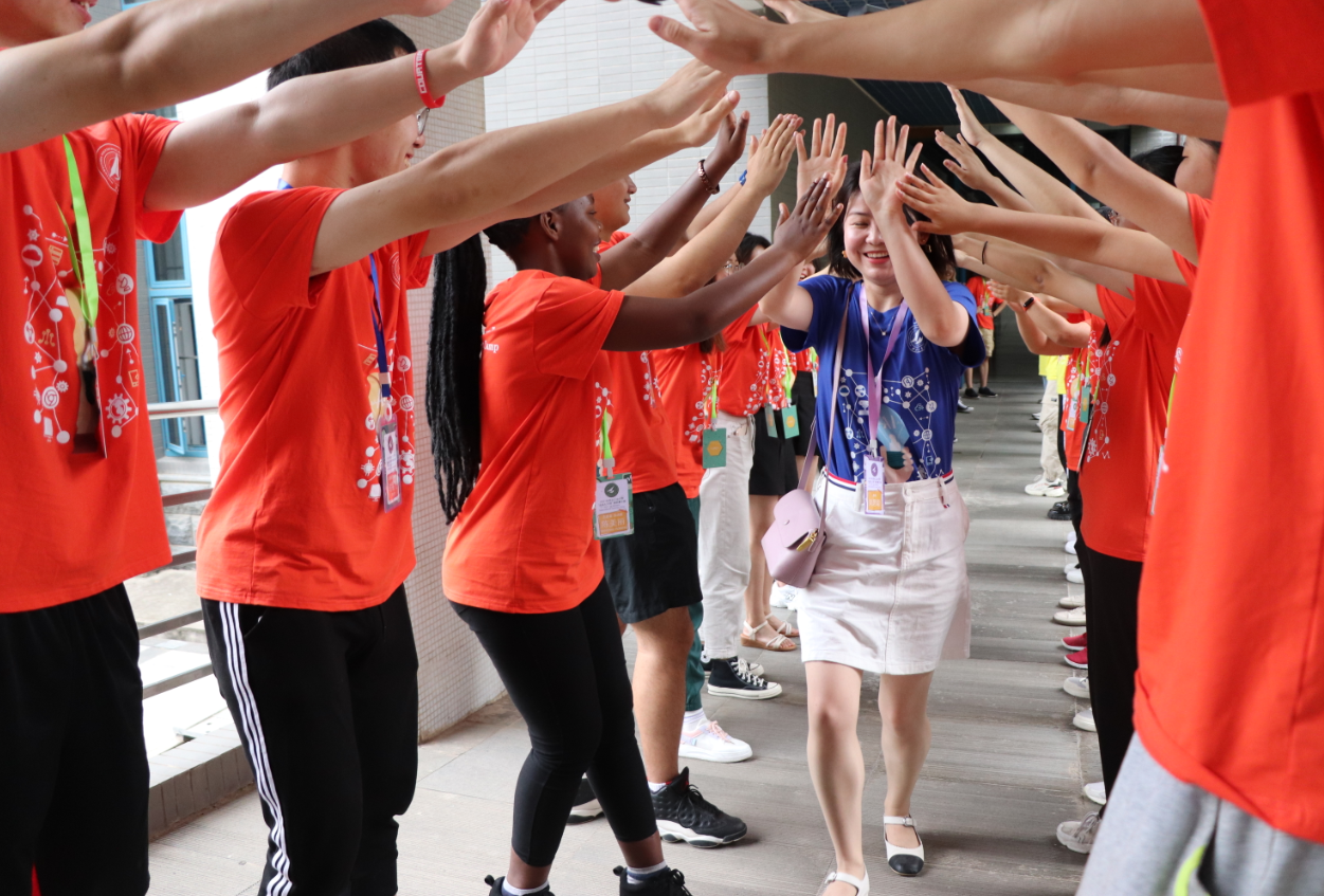 上午9:30,开营仪式在极具特色的入场欢迎和经久不息的热烈欢呼声中开始,志愿者们搭起营会特有的欢快、亲和、阳光和国际的彩虹桥,与老师们逐一击掌,表示热烈的欢迎。