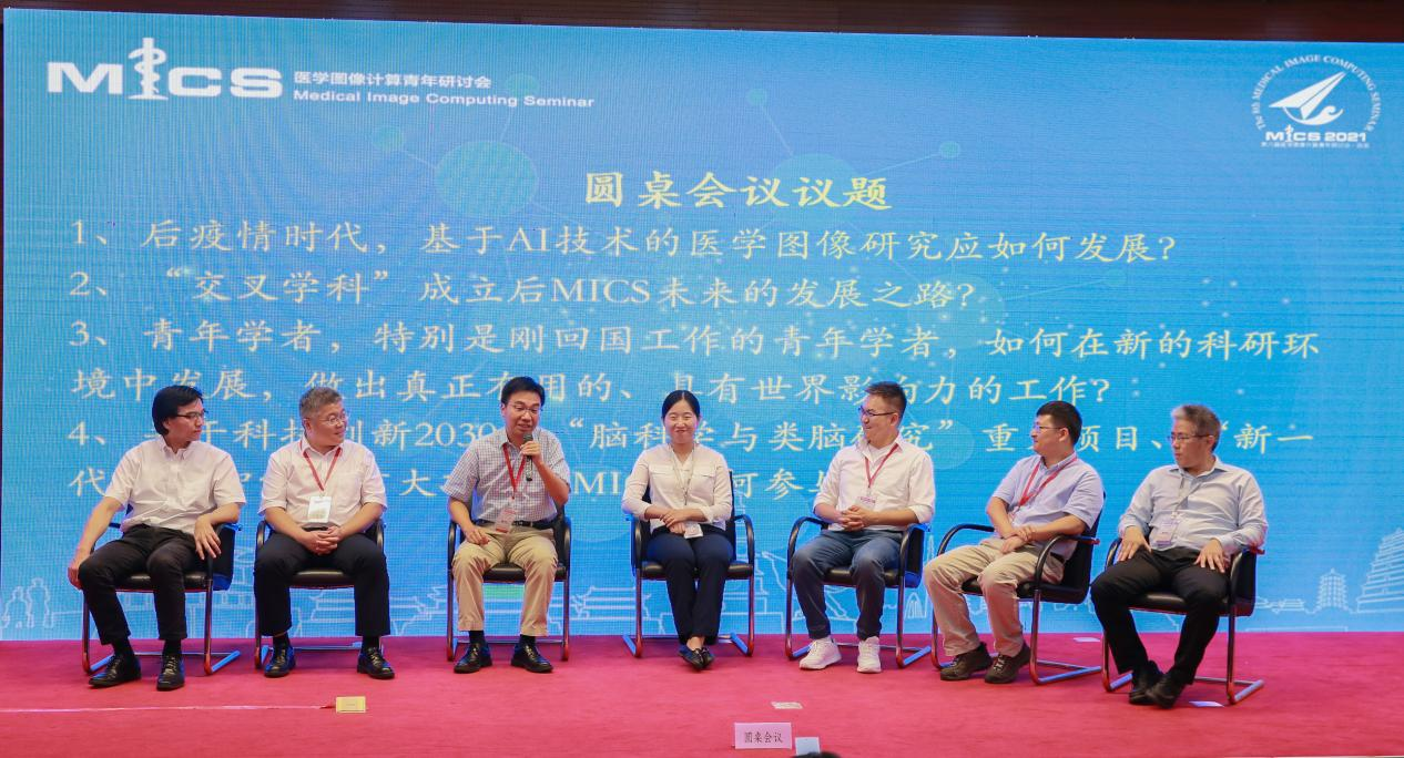 在学术报告之后,还举行了圆桌会议,由沈定刚教授、李阳、北京邮电大学刘勇教授、上海大学施俊教授、南京信息工程大学徐军教授、联影智能曹晓欢博士和我校国产偷拍
