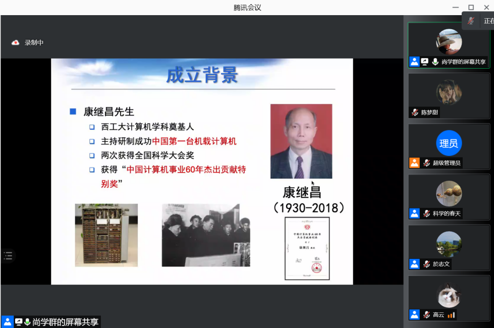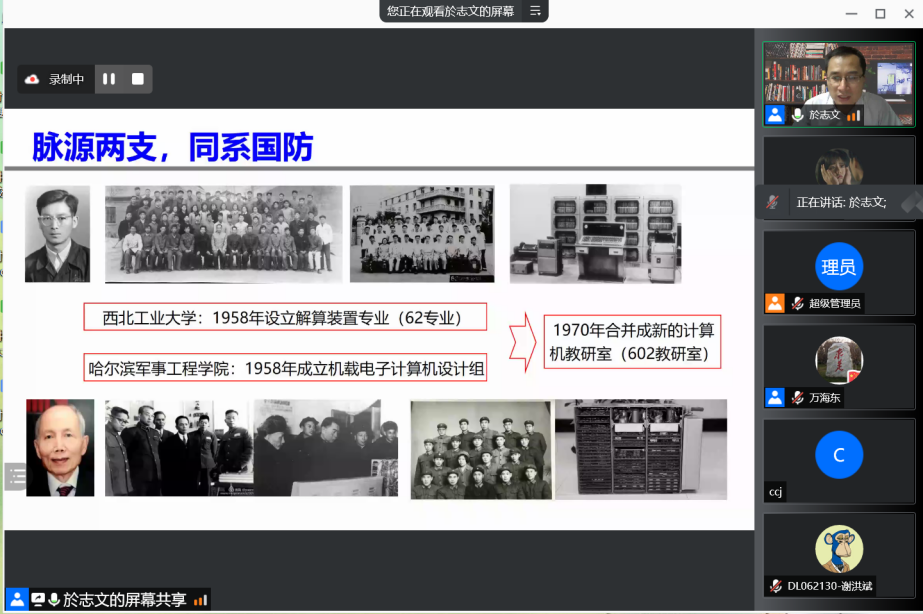 的过去、现在、未来》为题给同学们分享了学院的历史、现状及未来愿景。从计算机院60余年的建设历程,到目前的学科排序,师资队伍,高层次人才建设,优秀院友,国际合作项目,最终落脚于建设世界一流学科和培养世界一流人才,使新生及家长们对学院历史、特色、能力及发展方向有了具体的了解。